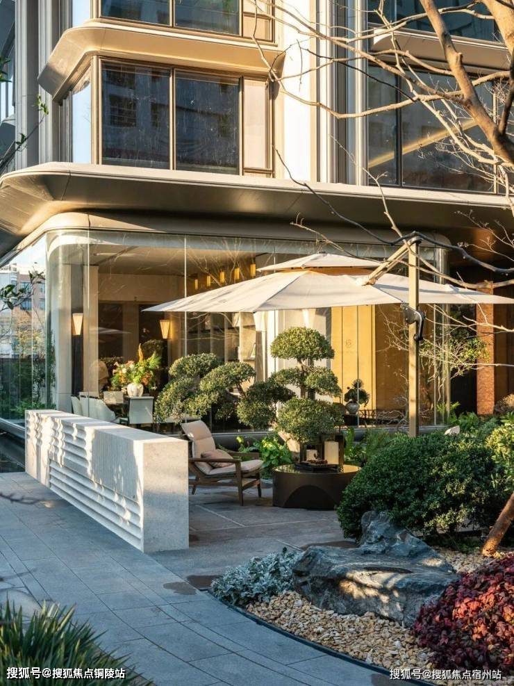 而在3、5号楼之间,则搭建了【围炉夜话】场景空间。古木纹奢石砌成的火炉旁,整木炭化石凳散发着山林野趣,一株红舞姬枫树翩然伴舞。冬日傍晚,好友围坐,体会名门温情。