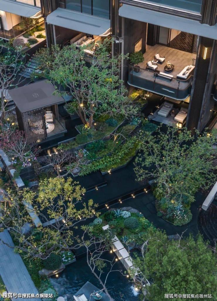 山川溪谷与休憩架空层空间共汇,于庭园深度,打造一处可游、可观、可赏的自然谧境。