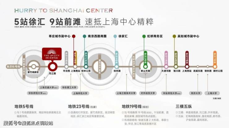 项目 无缝衔接 15 号线元江路站 2 号口 ,步行 3 分钟即可进站,是真正的地铁上盖项目。15 号线是上海南北向核心通勤快线, 5 站直达徐汇、9 站抵达前滩 ,快速串联漕河泾、张江、陆家嘴等核心商圈。同时临近 5 号线颛桥站(约 800 米) ,双轨交汇形成 “十字枢纽”,无缝衔接上海各大核心区域。未来还将衔接 19 号线(规划)、23 号线(在建) ,形成 “三轨交汇” 格局,通勤便捷度大幅提升。