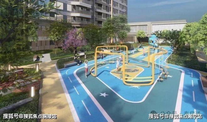 中央绿地作为社区的核心,铺设有健身跑道,选用环保材料,兼具弹性与防滑性,方便居民进行晨跑与健身。舒适的木质坐凳与现代简约的金属、石材元素相结合,提供了良好的休闲场所。