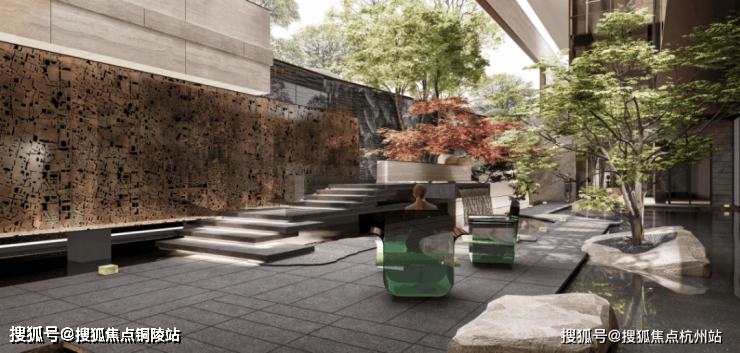 社区景观方面,项目以"富林风华,十景多花园"为核心理念,通过现代设计语言重构《富林十景》的山水意象,将"山、水、茶、酒、舟、市"等江南文化符号有机融入空间序列营造"一步一景,移步异景"的沉浸式归家体验。
