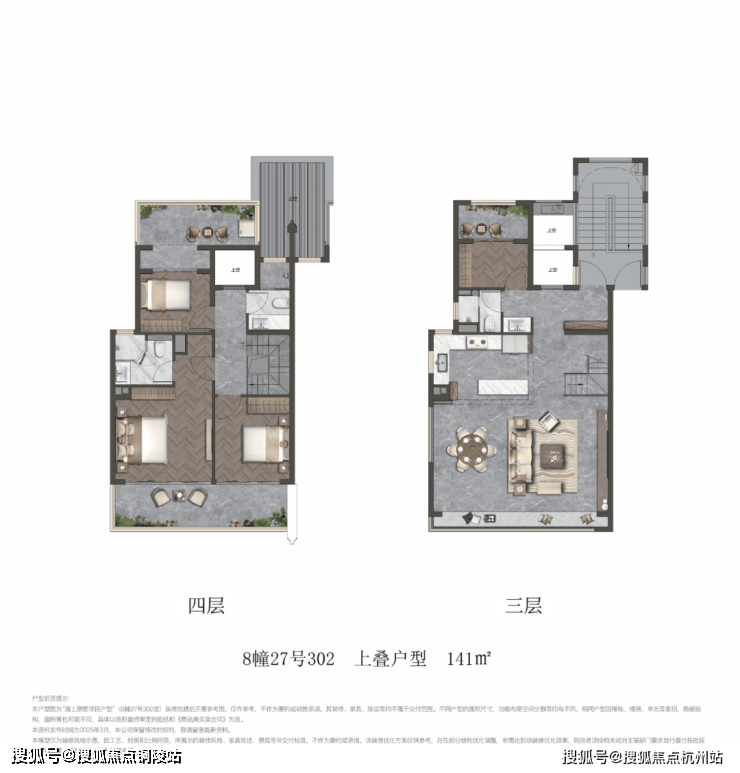 项目叠墅包含建面约141㎡上叠和建面约150㎡下叠