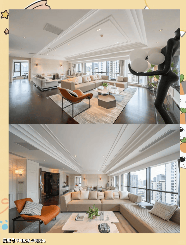 豪宅的底气从来都在品质里!7-12层纯低密洋房,188-320㎡阔尺户型,得房率高达83%,这在市中心简直是“奢侈品”。一梯一户专属入户,私享电梯厅可打造玄关艺术区;4.2米层高搭配全景落地窗,白天看梧桐光影,夜晚揽城市霓虹。