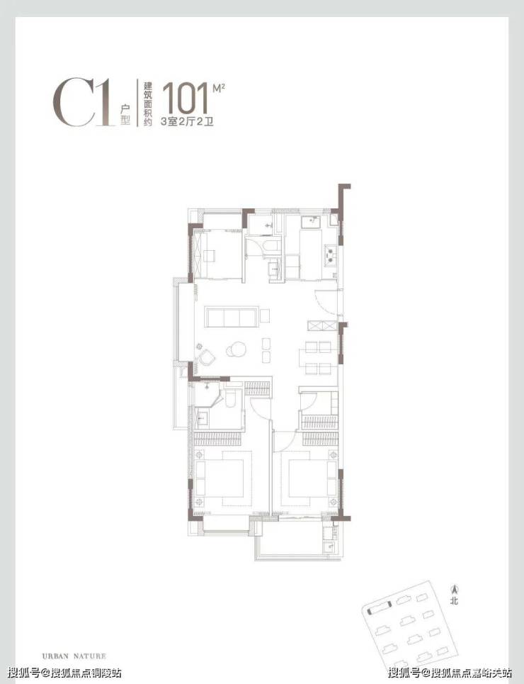 从户型设计看,建面约100、101㎡三房三开间朝南,动静分区、全卧飘窗,主卧就寝区→衣帽间→卫浴间层层递进,仪式感满满。