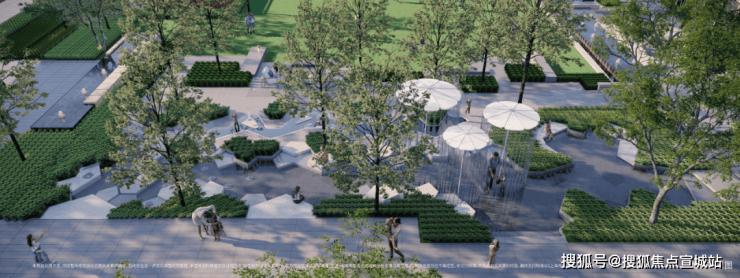 阳光草坪,大面积的平坦开敞绿地塑造了舒适平和的氛围,小朋友可以日常在这里跑跑跳跳释放天性,周末时可以铺上餐布,搭起帐篷来一次露营。