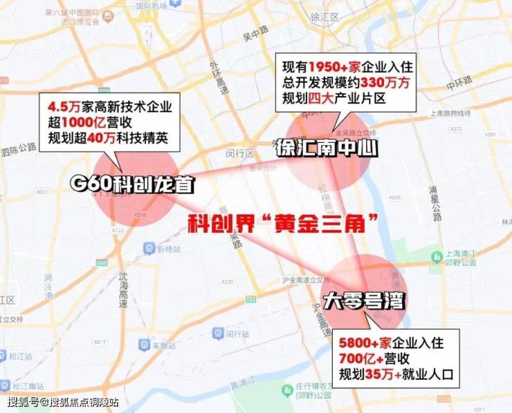 G60科创龙首与徐汇南中心、大零号湾,被业界喻为科创界的”黄金三角“天花板!