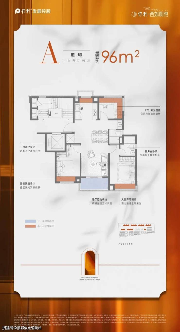 所有户型都做到了三开间朝南+南向双卧+主卧套房设计+270°L型采光面。