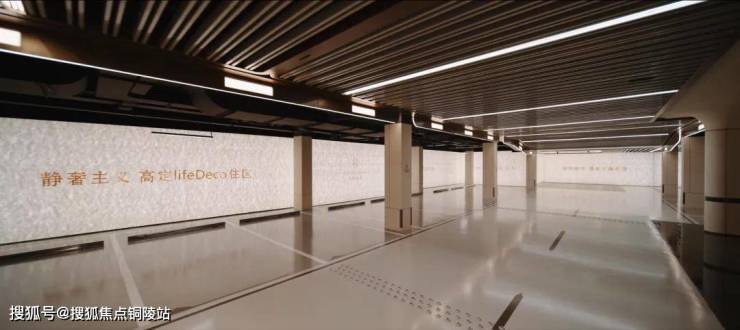 过去在豪宅项目才能看到的类似于“星空顶”地下车库坡道,招商臻境使用了看来更加高级的香槟金色吊顶,并加上穹顶闪耀的“追光”坡道!