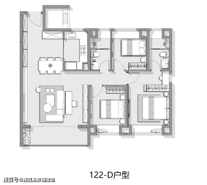 在售户型面积:主力建面约94-122㎡精装3房,部分房源包含94-103㎡三房、122㎡3+1房