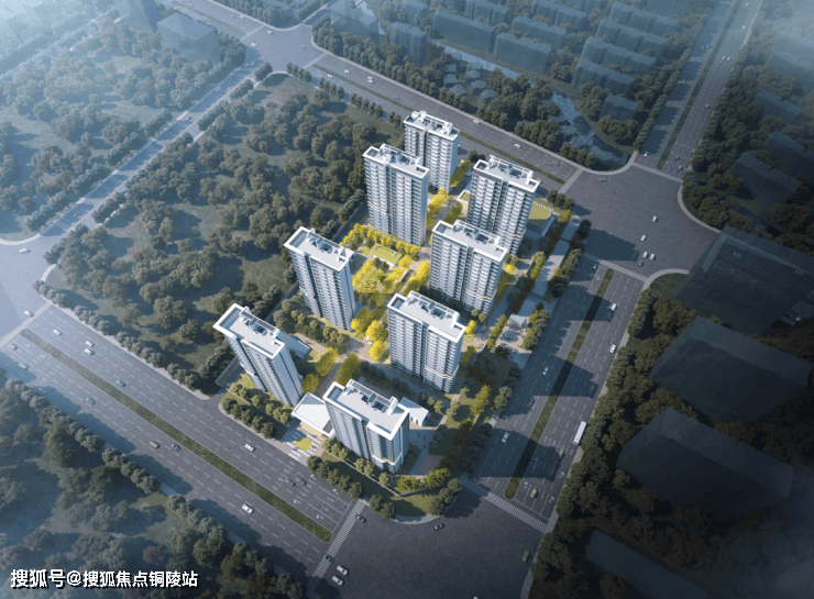 低密舒适社区:容积率2.0,绿化率35%,最大约59米楼间距,围合式布局搭配中轴对称设计