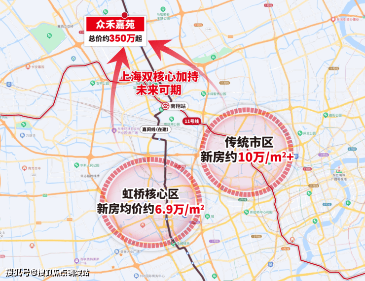 同时,嘉闵线目前沿线新盘均价在6-8万/㎡,相比之下总价约350万起的众禾嘉苑洼地属性明显,未来必然能持续的从虹桥、市区两大中心导入人口,经久不衰!