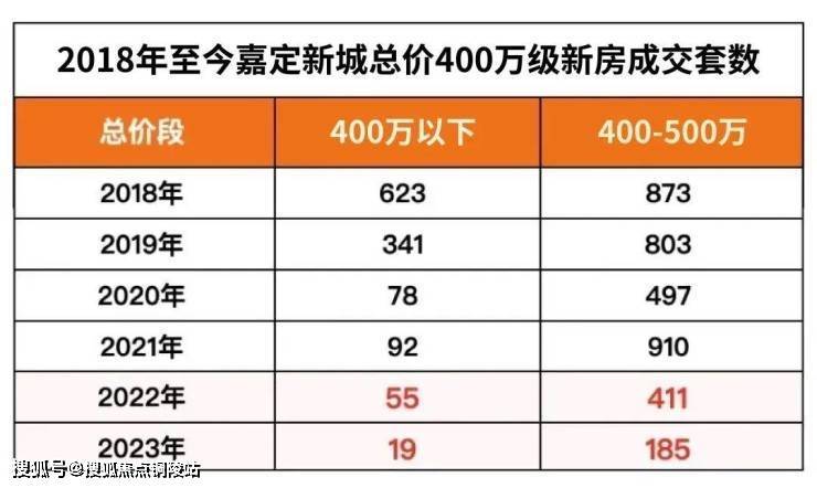 据数据统计,2022年嘉定新城有466套新房成交价在400万级,但2023年就只有204套新房总价在400万级。