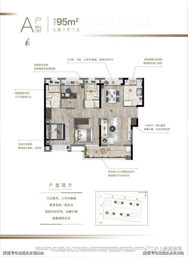 建面约95㎡3房2厅2卫