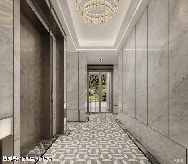 再次,项目首层大堂与电梯轿厢品质感拉满。