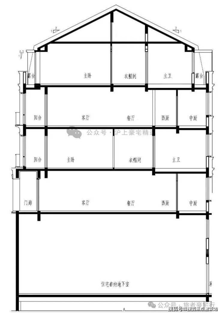 来看看叠加别墅的剖面图。