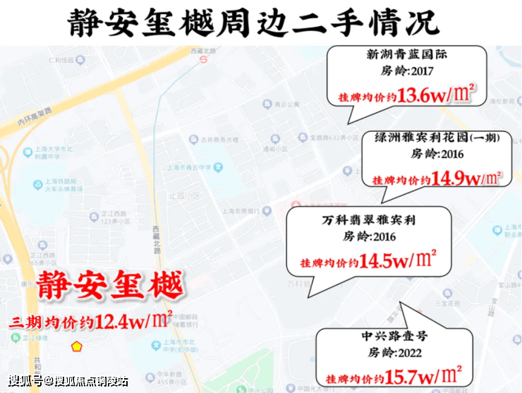 尤其是像静安玺樾所在的静安内环内而言,约12.4w/㎡的均价直接把性价比拉爆!