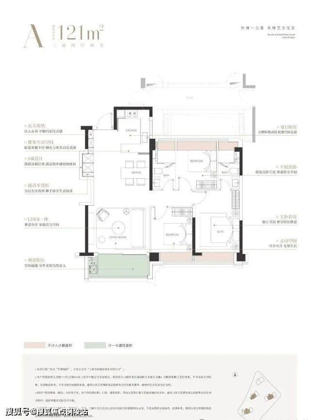 建面约121㎡3房: