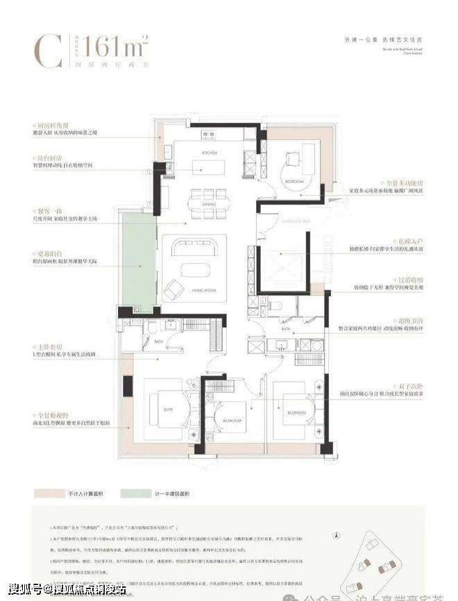 项目坐拥外滩、陆家嘴、北外滩黄金三角核心,步行可达外滩滨江步道,周边商业、文化、医疗、教育配套成熟。户型设计注重空间利用率与居住舒适度,实现主次卧面积平权,配备国际一线品牌装修与全屋智能系统,是内环顶豪的标杆之作。