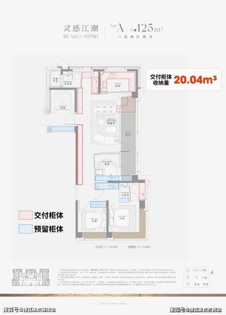 据小胖君手工统计,项目125㎡3房边套户型的整体交付柜子+预留衣柜,收纳空间可以达到约20.04m³,中间套户型也能达到约16.56m³!