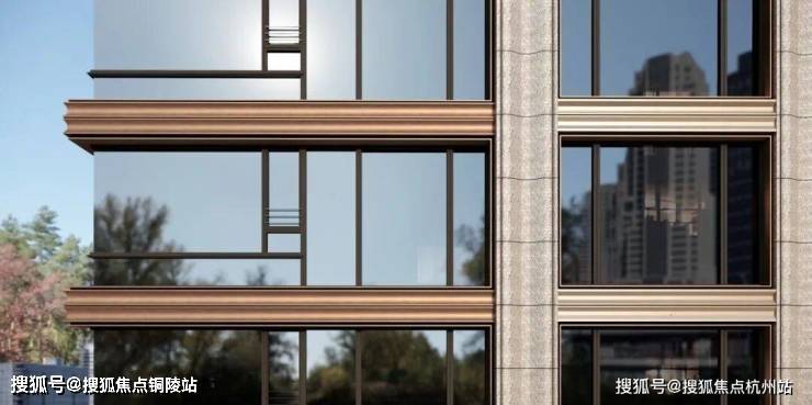 可视面都是古铜色金属铝板、米黄色铝板 / 石材、边套270°大转角飘窗,且从正面、侧面到背面,立面都保持精致统一,四面平权尽显高端质感。