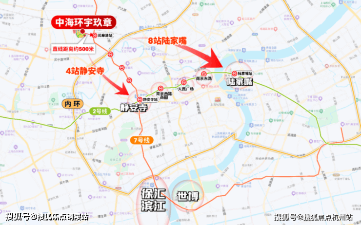 项目紧邻内环,与静安一线之隔,4站直达静安寺、5站中山公园、7站人广。