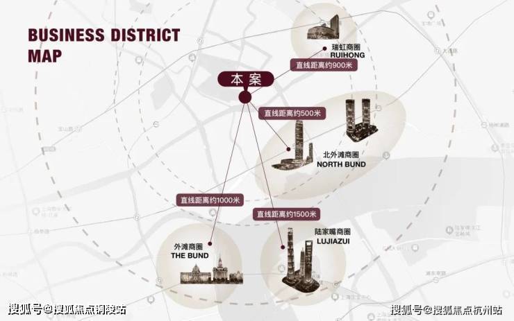 商业配套方面:项目约2公里内,多元繁华构筑封面商业圈:北外滩商圈直线距离约500米,外滩商圈直线距离约1000米,陆家嘴商圈直线距离约1500米,瑞虹商圈直线距离约900米。