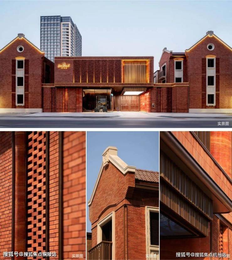 例如,在社区入户,目前已经完美呈现出来的,有强烈视觉冲击的立面大量的红砖、红洞石及大面积的落地弧形玻璃搭配的相得益彰,整个门头既有厚重的历史感,又不失极简主义的现代美。