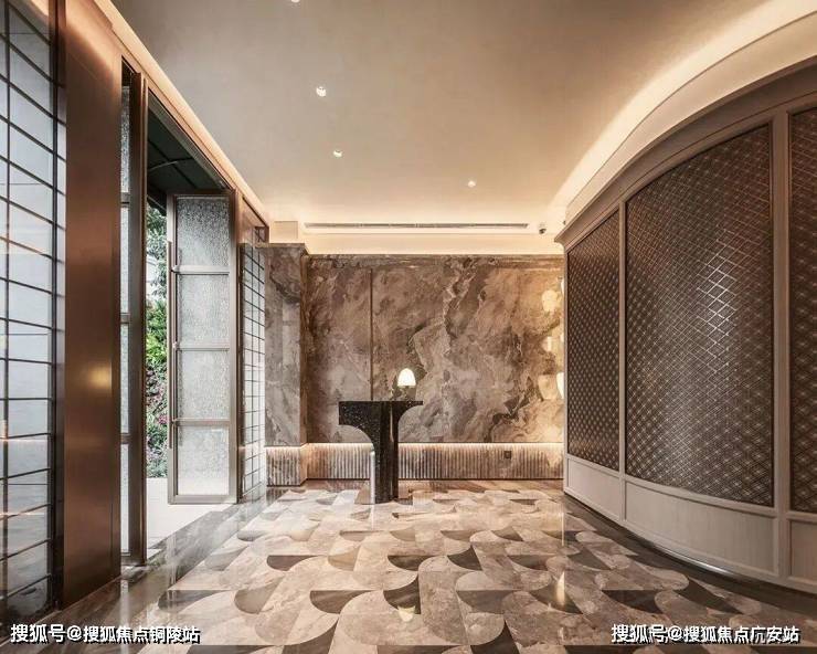由外而内,用料十足,公区打造光石材就用了十几种,室内空间配置更是拉满。