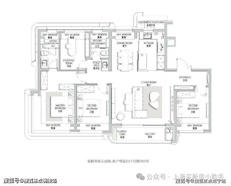 而在建面约134㎡ 3房,配置了主卧套房,更是配置了270°环幕级景观飘窗,正如同全面屏一样,带来IMAX级的宽幕视野!