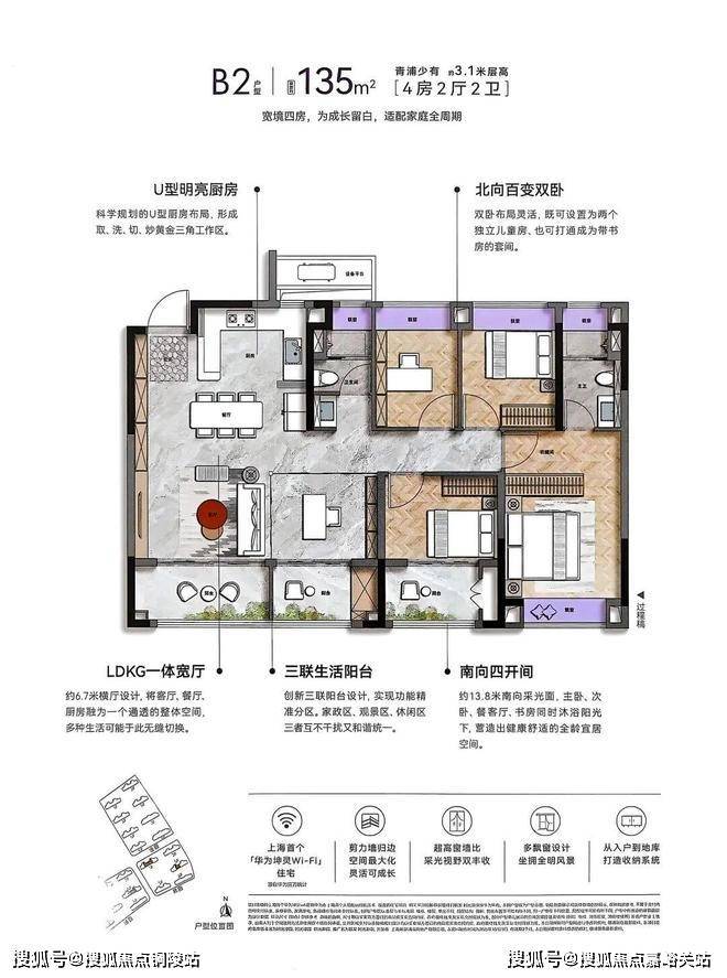 项目全屋标配华为全屋智能+方太厨电等一线品牌,其中很多亮点都是区域首发,创新设计 “一站式化妆”的悦己卫浴和 “一步到位”的效率厨房