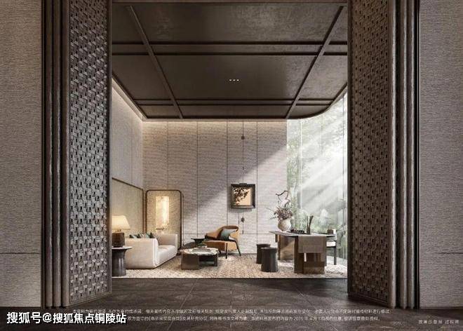 双轴线的设计,充分拓宽了视野面与观赏点位,环形回廊、精神游廊与下沉庭院通过立体景观平台相融,又创造出隔岸听泉的诗意场景。在每个重要生活触点,业主都能拥享独特景观和欣赏视野。