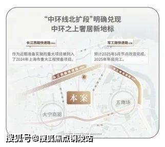 交通方面:项目紧邻长江西路地铁站(直线距离约150米),1站江杨南路,5站复旦,7站五角场。中环线北扩段明确兑现,军工路快速路25年开工,长江西路快速路列入上海市重大工程清单预备项目,快速链通城心,随着中环线北扩段的政策明确,淞南将正式进入中环时间。未来经逸仙高架,进入南北高架、内环高架、中环高架,可快速链通南北上海。