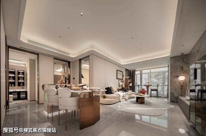 项目首层通过硬朗直线呼应柔和曲线勾勒,辅以温润石材与古铜色金属线条融合,打造东西方美学共融的艺术藏品