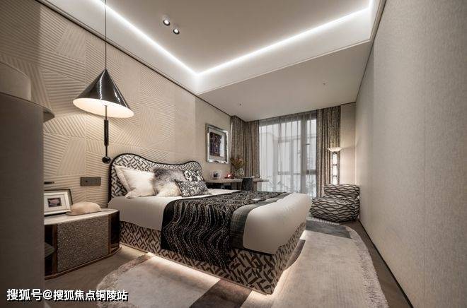 即便放了双人床、两个床头柜、一个收纳柜、两个休闲座椅和茶几,空间依旧绰绰有余,尺度感惊人!