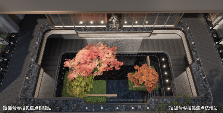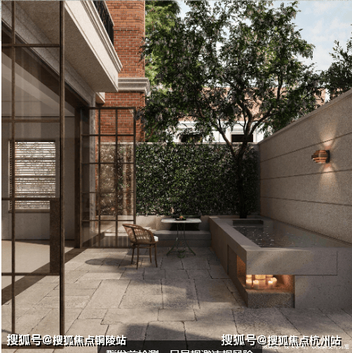 项目利用下沉式景观庭院,结合艺术花园、摩登水景等,打造了一座高端的下沉式会所,规划设有泳池、健身房、行政酒廊等场景。