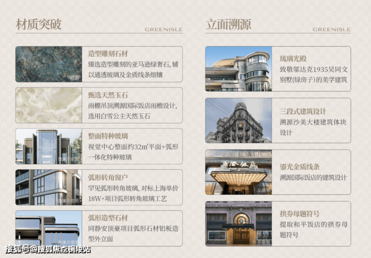项目的建筑立面:巴西进口亚马逊绿奢石、弧角玻璃和铝板,这样颠覆性的组合在外环别墅项目中,可以说是非常少见的存在!
