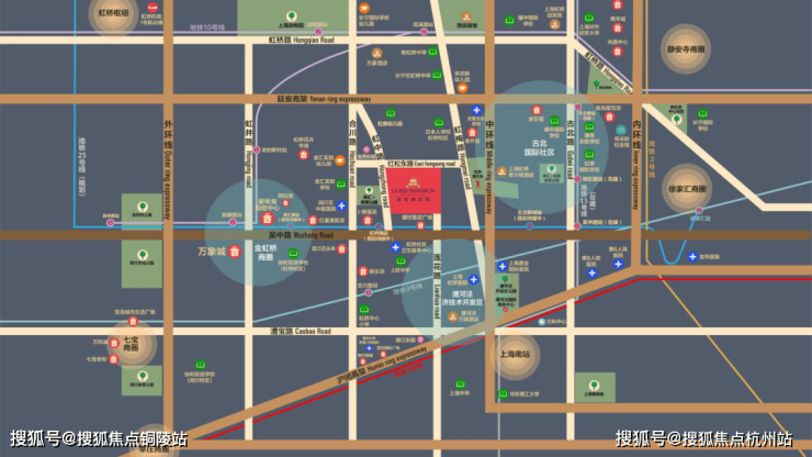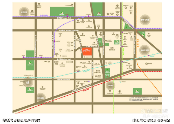 交通配套方面:项目地处长宁、徐汇、闵行三区交汇的金虹桥板块的核心区位,拥有多维立体的交通,延安高架、中环线、外环线环伺。