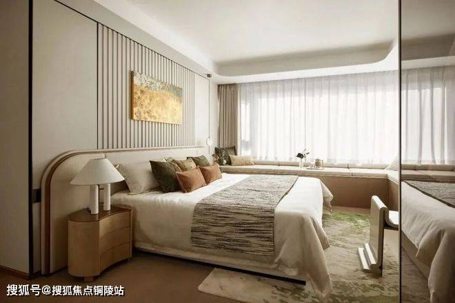 主卧套房设计,尺度惊人,贯穿南北,预留步入式衣帽间的空间,配备270°转角飘窗,实现无界视野和优异采光,大宅气度油然而生!