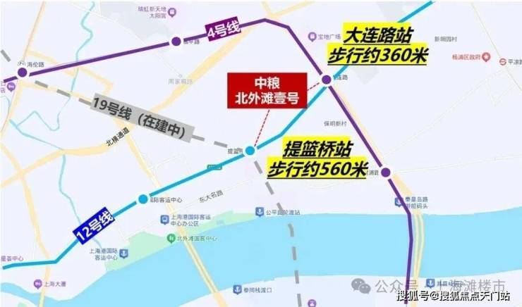交通方面 ,项目周围环绕 三条地铁 ,4、12 号线大连路站 ,12、 19号线(在建)提篮桥站 。