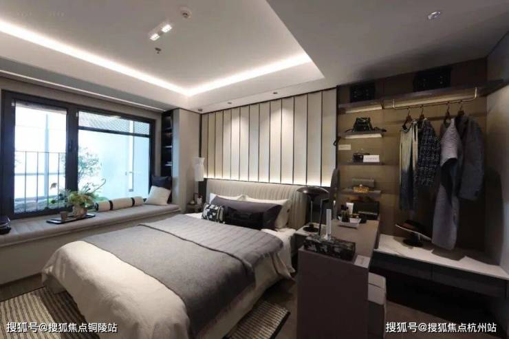 超级主卧: 主卧空间更大、更方正,系统窗由四玻两腔固定式及内开内倒灵动式相结合,在降噪保温挡尘土等方面表现出色,电动窗帘电机为交付标准。