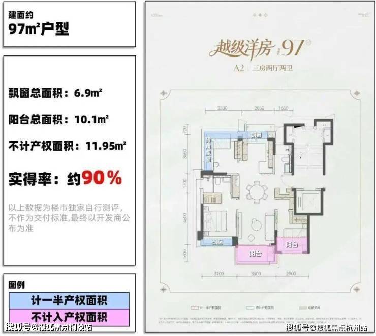 约97㎡A2户型整体实测下来,实得率已经来到了90%!