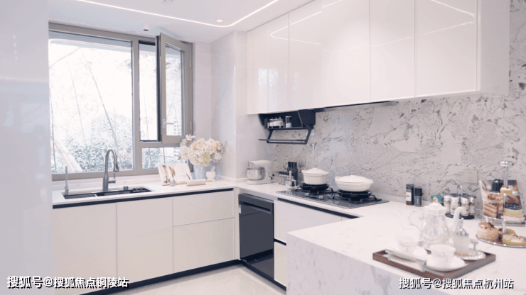 食品库藏在厨房中,上到吊柜里的天使拉篮,下到岛台内部“隐藏式”小推车和拉篮,还有岛台外侧的收纳空间,餐边柜的收纳空间,全都是交付标准!