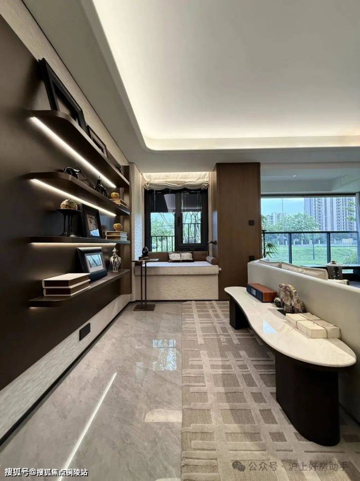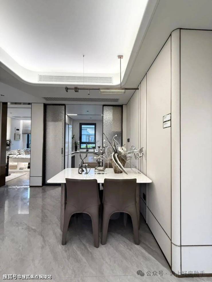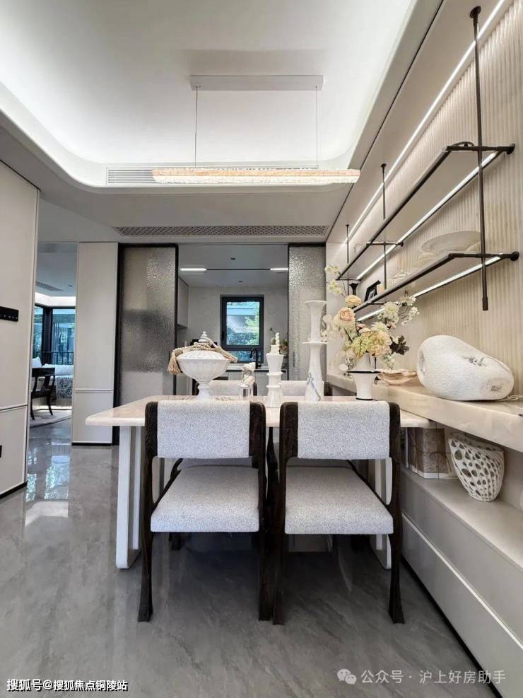 归家门厅设计为 弧形顶棚 ,非对称构图,圆润的形式提供给业主放松的情绪价值。可以说是处处体现人居的松弛感和舒适度。