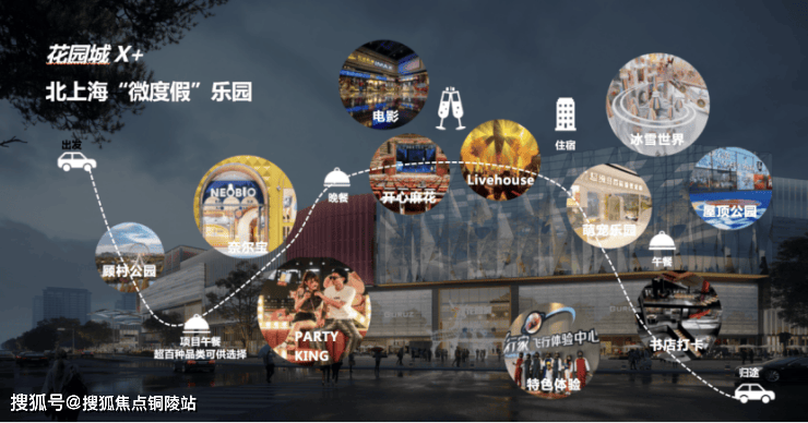 项目预计引⼊ 20+主次⼒店 ,在X+商业理念下塑造缤纷场景,创造多元体验。
