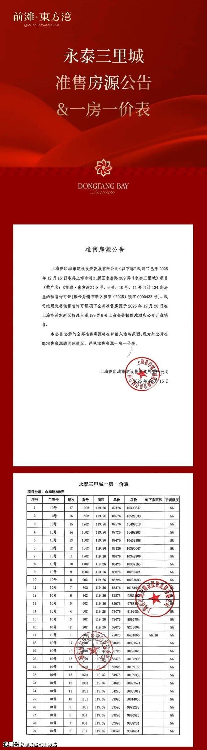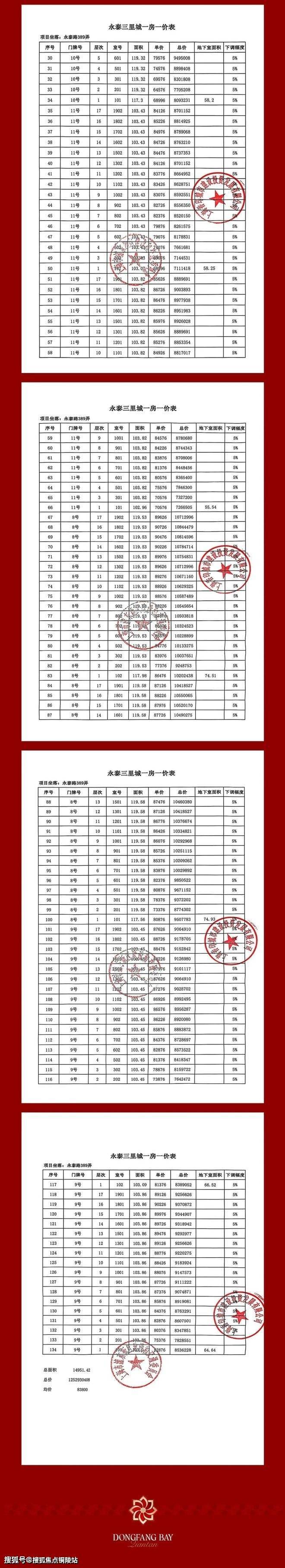 一房一价表: