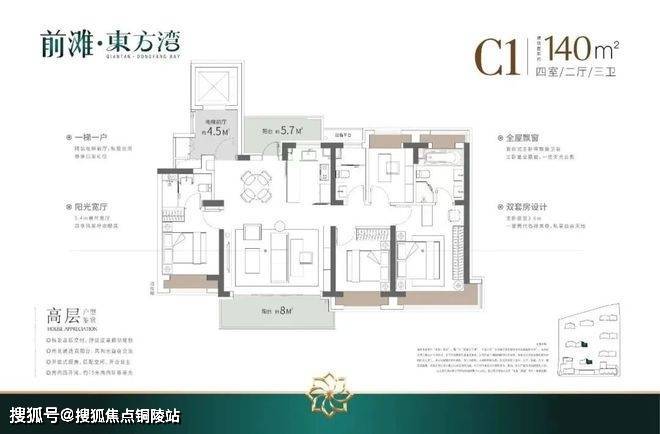 如果有进阶改善置业需求的客户,可以选择建面约140/175㎡4房2厅3卫!