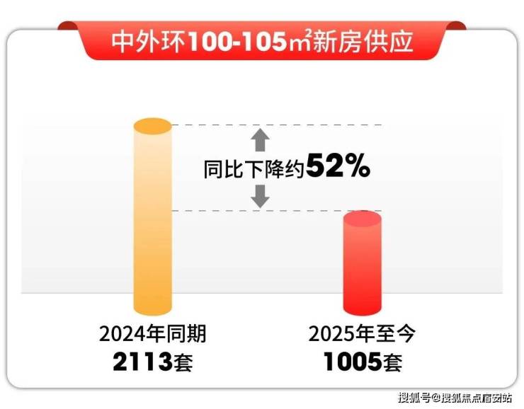 据数据统计2025年至今上海中外环建面约100-105㎡新房供应了1005套,去年同期已经供应2113套,同比下降约52%。