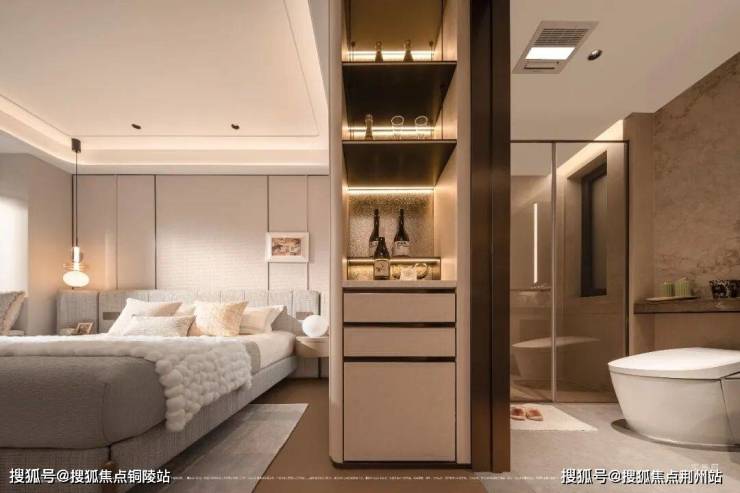 南向双卧全明通透,主卧奢享升级套房设计,门口预留次净衣区,衔接独立卫浴,搭配整墙定制衣柜与双柜布局,最大化收纳潜能;
