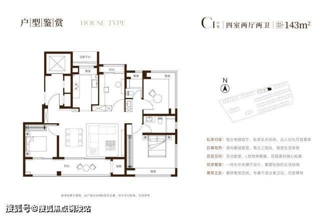 类一梯一户设计,电梯前室可作私人空间,独立玄关保障私密性;
