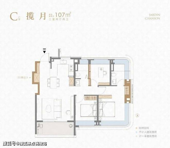 不夸张的讲,这个建面约107㎡刷新了我对百平三房的新认知,据悉该户型或将申请专利,我认为实至名归!